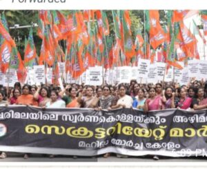 തിരുവനന്തപുരം: ഹൈന്ദവ ക്ഷേത്രങ്ങളുടെ സംരക്ഷണത്തിന് രൂപീകരിച്ച ദേവസ്വം ബോർഡ് ദല്ലാളന്മാരുടെ സ്ഥാപനമായി അധ:പതിച്ചതായും ദേവസ്വം ബോർഡ് പിരിച്ചു വിടണമെന്നും ബി ജെ പി സംസ്ഥാന പ്രസിഡന്റ് രാജീവ് ചന്ദ്രശേഖർ. ശബരിമല സ്വര്ണ്ണക്കൊള്ളയില് സി.ബി.ഐ അല്ലെങ്കില് ഇ ഡി അന്വേഷിക്കണമെന്ന് കേന്ദ്രസര്ക്കാരിനോട് ആവശ്യപ്പെടും. നാലര കിലോ സ്വര്ണം ശബരിമലയില് നിന്ന് കൊള്ളയടിക്കപ്പെട്ടത് ചെറിയൊരു വീഴ്ചയല്ല, വലി തട്ടിപ്പും കൊള്ളയും അഴിമതിയുമാണ്. ഇതിന് ഉത്തരവാദികള് പിണറായി സര്ക്കാരാണെന്നും മഹിളാ മോർച്ച നടത്തിയ സെക്രട്ടേറിയറ്റ് മാർച്ച് ഈലാടനം കൊണ്ട് ബി ജെ പി സംസ്ഥാന പ്രസിഡന്റ് പറഞ്ഞു.