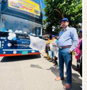 നഗരക്കാഴ്ചകൾ എന്ന കെഎസ്ആർടിസി റൈഡ്- ഡബിൾഡക്കർ ബസ്- ശാസ്തമംഗലത്തു നിന്നും ആരംഭിച്ച കവടിയാർ മ്യൂസിയം വി.ജെ.ടി ഹാൾ, ലുലു മാൾ, ശംഖുമുഖം, വേളി എന്നിവിടങ്ങളിലൂടെ ന​ഗരം ചുറ്റി തിരികെ ശാസ്തമംഗലത്ത് അവസാനിച്ചു. മാനസികാരോ​ഗ്യ കേന്ദ്രത്തിലെ 30 ഓളം പേരാണ് യാത്രയിൽ പങ്കാളികളായത്.