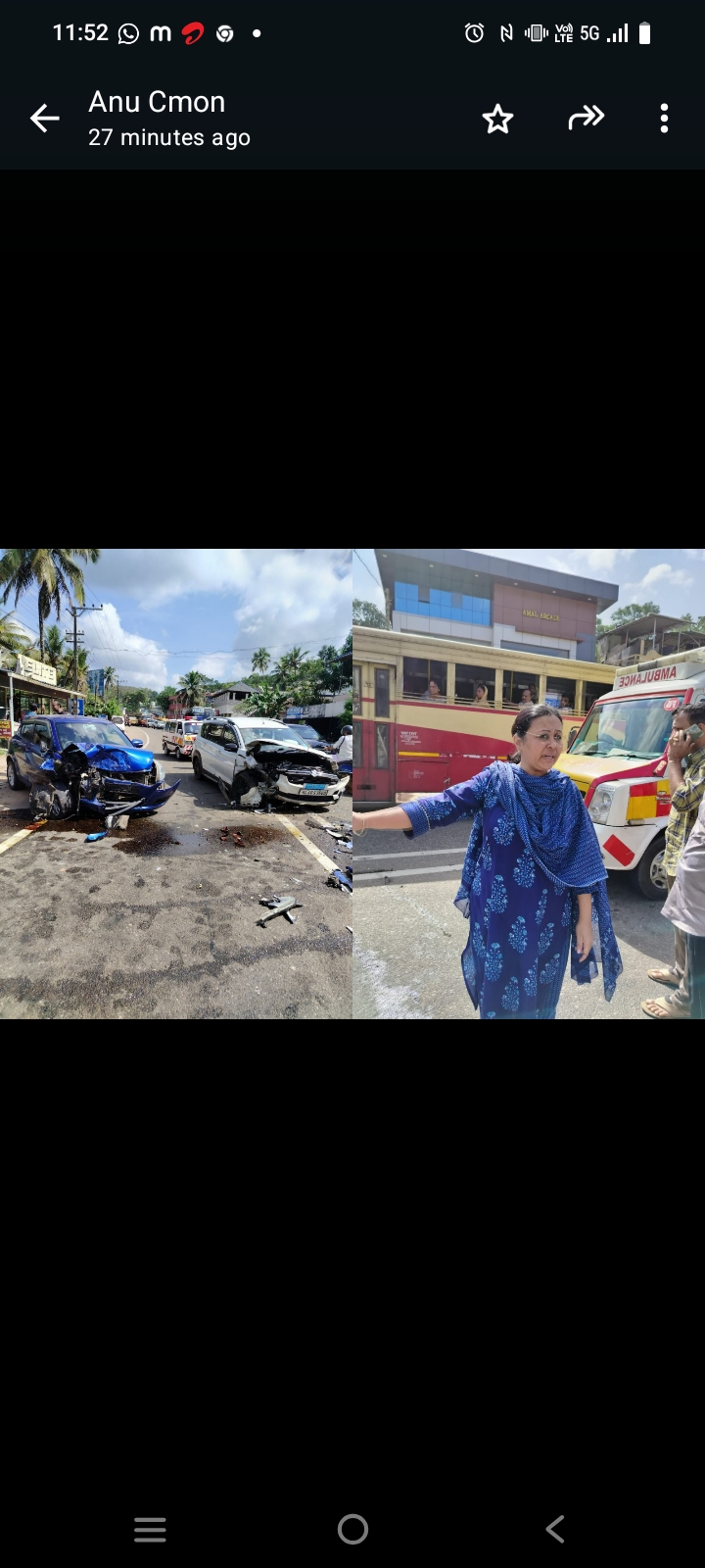 കൊല്ലം നിലമേലില് രണ്ട് കാറുകള് കൂട്ടിയിടിച്ചുണ്ടായ അപകടത്തില് രക്ഷാപ്രവര്ത്തനം നടത്തി ആരോഗ്യ വകുപ്പ് മന്ത്രി വീണാ ജോര്ജ്. അതുവഴി സഞ്ചരിക്കുകയായിരുന്ന മന്ത്രി അപകട വിവരം അറിഞ്ഞ് വാഹനം നിര്ത്തി കാറില് നിന്നിറങ്ങി പരിക്കേറ്റവര്ക്ക് വേണ്ട സഹായം നല്കി. പെട്ടെന്ന് അവരെ ആശുപത്രിയില് എത്തിക്കാനുള്ള ക്രമീകരണം ഒരുക്കി. 9 പേര്ക്കാണ് പരിക്കേറ്റത്. മന്ത്രിയുടെ പൈലറ്റ് വാഹനത്തിലും ആംബുലന്സിലുമായി പരിക്കേറ്റവരെ കടയ്ക്കല് താലൂക്ക് ആശുപത്രിയില് എത്തിച്ചു. പരിക്കേറ്റവര്ക്ക് വിദഗ്ധ ചികിത്സ നല്കാന് ആശുപത്രി അധികൃതര്ക്ക് നിര്ദേശവും നല്കി.
