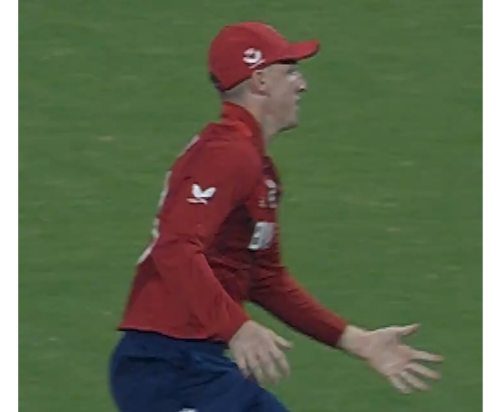 എന്നാൽ അഞ്ചാം വിക്കറ്റിൽ ബെത്തലും വിൽ ജാക്ക്സും ഒന്നിച്ചതോടെ ഇന്ത്യ വിറച്ചു. 39 പന്തിൽ നിന്ന് 77 റൺസെടുത്ത ഈ സഖ്യം അപകടം വിതയ്ക്കവെ അക്ഷറിന്റെ ഫീൽഡിങ് മികവ് ഇന്ത്യയുടെ രക്ഷയ്ക്കെത്തി. 14-ാം ഓവറിൽ അർഷ്ദീപിന്റെ പന്തിൽ അക്ഷറും ശിവം ദുബെയും ചേർന്നെടുത്ത ക്യാച്ചിൽ ജാക്ക്സ് പുറത്ത്. 20 പന്തിൽ രണ്ട് സിക്സും നാല് ഫോറുമടക്കം 35 റൺസായിരുന്നു ജാക്ക്സിന്റെ സമ്പാദ്യം.