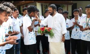 അണ്ടർ 19 ആൺകുട്ടികളുടെ ദേശീയ സ്കൂൾ ഫുട്ബോൾ കിരീടം ചൂടിയ കേരള ടീമിന് വസതിയിൽ സ്വീകരണം ഒരുക്കി പൊതുവിദ്യാഭ്യാസവും തൊഴിലും വകുപ്പ് മന്ത്രി വി ശിവൻകുട്ടി.